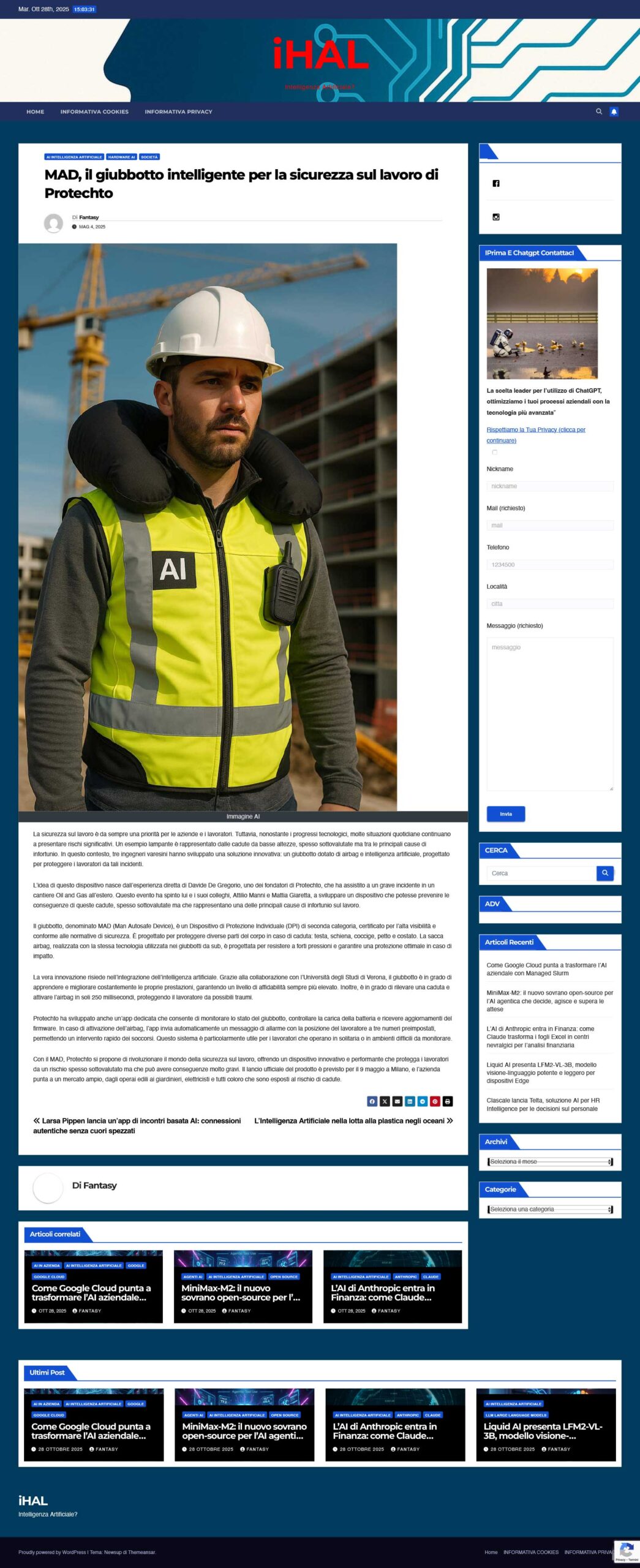 MAD, il giubbotto intelligente per la sicurezza sul lavoro di Protechto