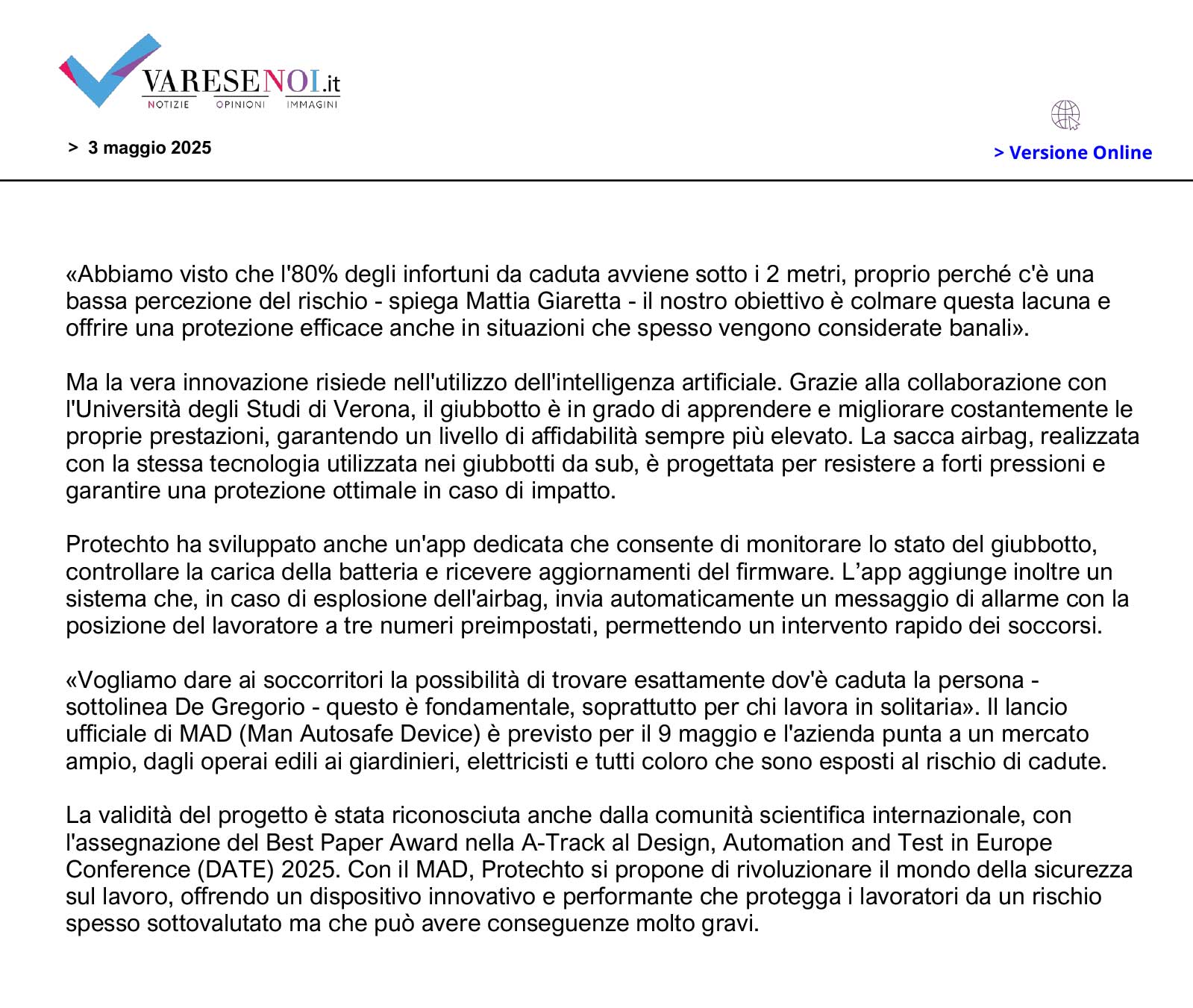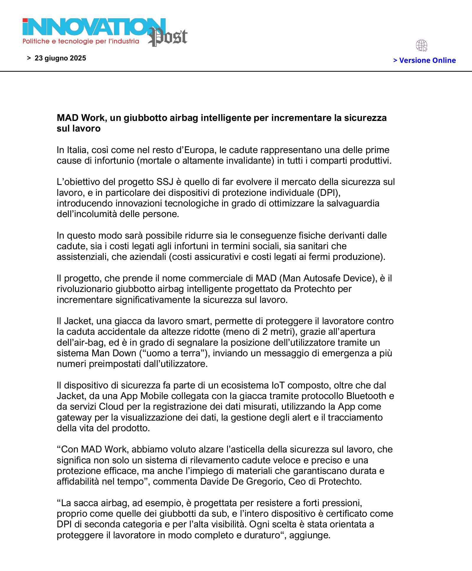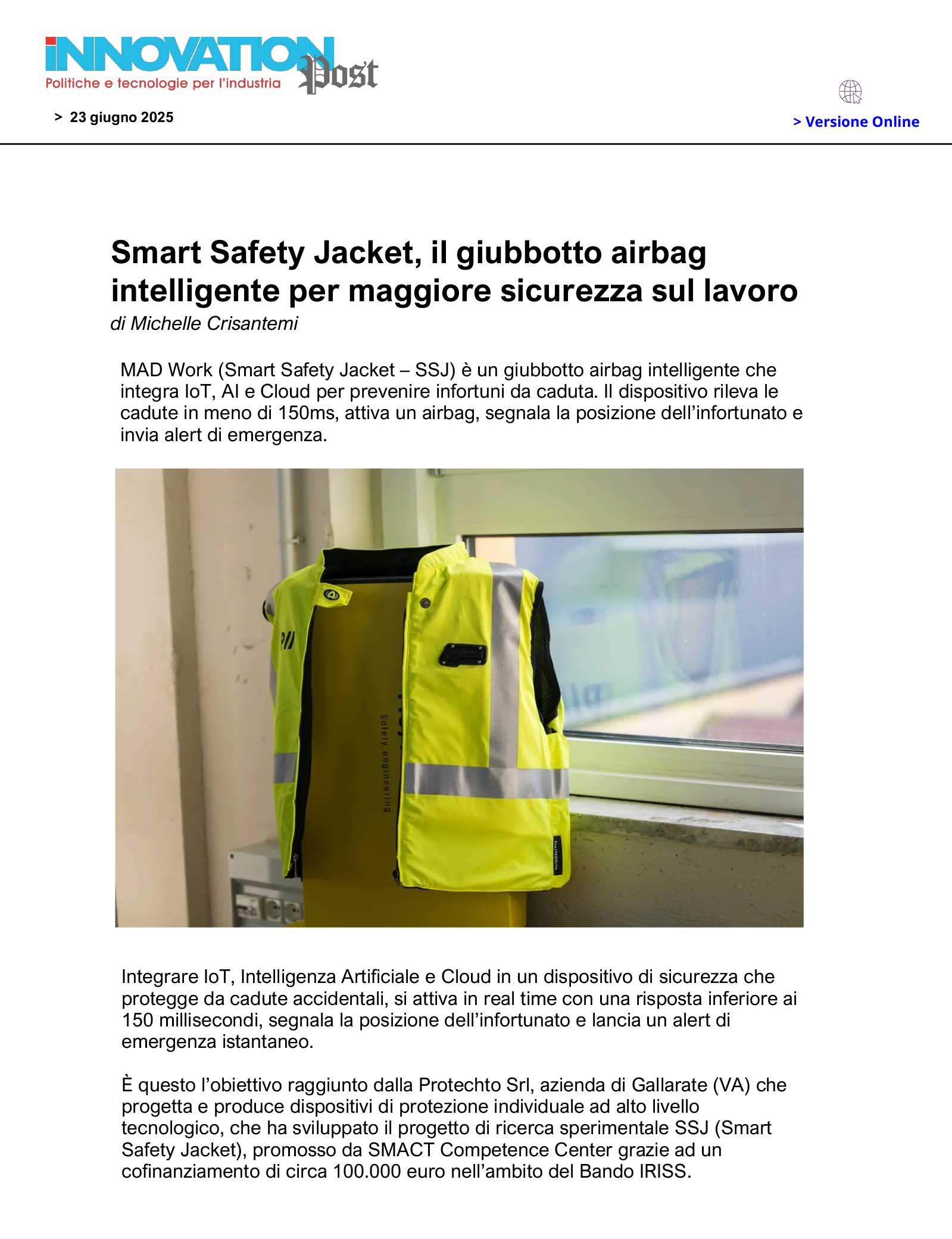 MAD, il giubbotto intelligente per la sicurezza sul lavoro di Protechto
